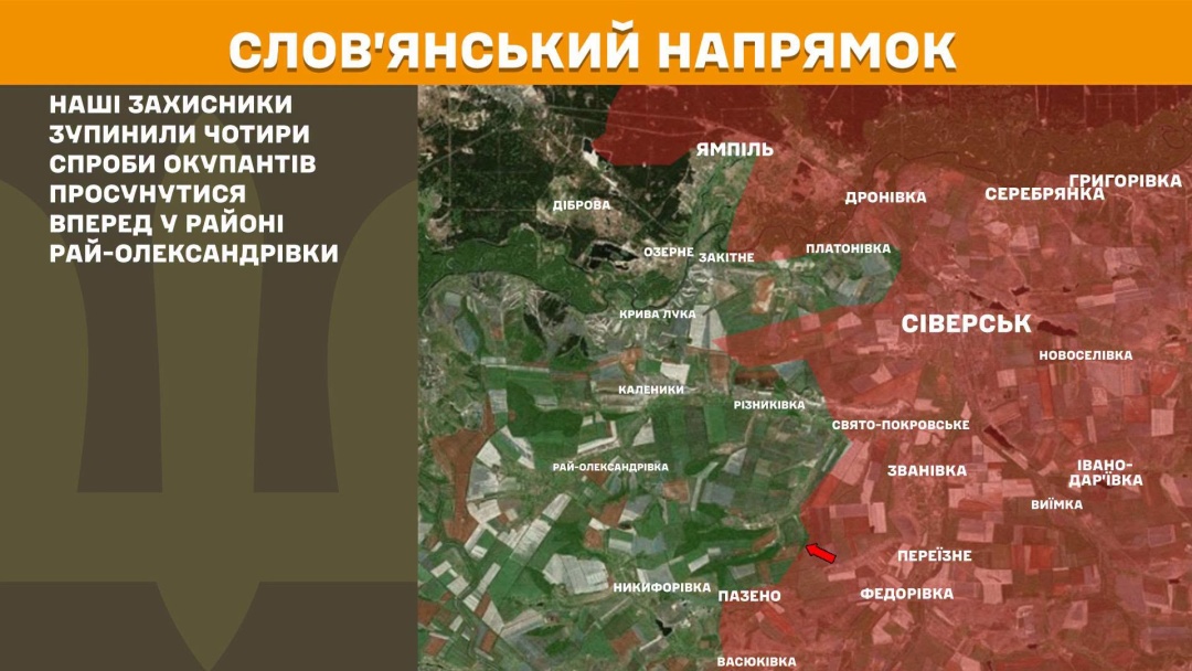 На Слов’янському напрямку Сили оборони зупинили чотири спроби росіян просунутися в районі Рай-Олександрівки.