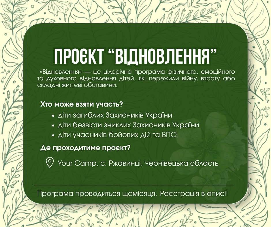 Проєкт «Відновлення», спрямований на психологічну підтримку та реабілітацію дітей, які пережили війну або складні життєві обставини.