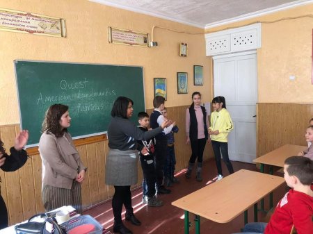 У четвер до Боянської ЗОШ завітали волонтери Корпусу Миру США в Україні з Полтавської та Кіровоградської областей: Рейчел Глассер та Рейчел Грейнджер. Разом з волонтеркою Корпусу Миру США в Україні, що працює в нашій школі Тейлор Кі та вчителькою англійської мови Кімін О.К., провели квест з учнями 5-их класів на тему “American Day”. Діти ознайомилися з визначними місцями США та отримали багато задоволення від квесту. Волонтери Корпусу Миру США в Україні поділили 5-ті класи на 4 команди, які змагалися за перше місце. Переможці отримали солодощі та дізналися багато цікавого.