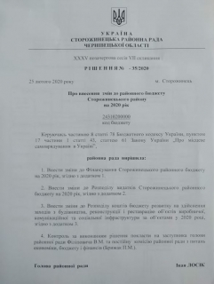 Сьогодні, 25 лютого 2020 року, відбулася XXXV позачергова сесія VII скликання Сторожинецької районної ради.