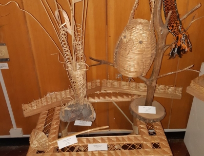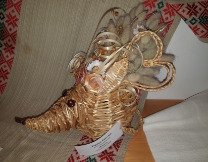 Церква, млини з вітряками, янгол, метелик, чаша, ріг достатку, обереги, герби, стільчики, космічний прибулець…Понад 40 виробів із лози представив народний майстер Михайло Гева.