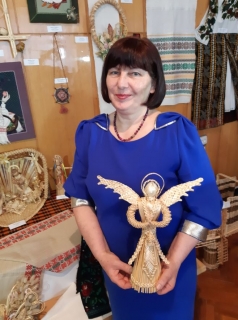 Лариса Броска займається соломоплетінням. На виставці представлено понад 20 її дивовижних виробів. Привертає увагу різдвяний вертеп: Матір Божа перед колискою маленького Ісусика, символічні лілії, овечки, літають ангелочки. Навіть не віриться, що все це зроблено із соломи.