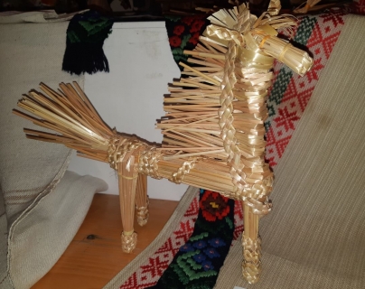 “Дуже трудомістка робота. Працювала над вертепом майже місяць, – запевнила майстриня. – Відроджую народні традиції виготовлення дідухів та павучків. А це ляльки-обереги, коник, мишка – символ року. В нашій області цей вид народного мистецтва ще не дуже добре розвинений, тому опановувала все самотужки. Перш за все, потрібно заготувати солому, знати, як її правильно висушити. Підійдуть будь-які злакові культури, хоча найкраща житня, бо вона має довге стебло. Веду гурток “Золота соломинка” при Сторожинецькому центрі дитячо-юнацької творчості. На виставці є роботи моїх талановитих учнів, якими дуже пишаюся”.