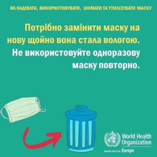 • за наявності респіраторних симптомів, перечислених вище, використовувати медичні маски та своєчасно замінювати їх (кожні 3 години або негайно після забруднення) з подальшим знешкодженням та миттям рук з милом або обробкою рук спиртовмісним антисептиком відразу після знімання маски.