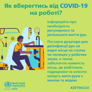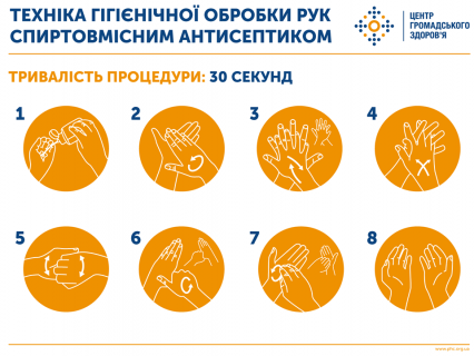 • роздрукуйте та/або оновіть інформаційні постери та нагадування персоналу про важливість та техніку миття рук та/або обробку рук спиртовмісними антисептиками (додаються);