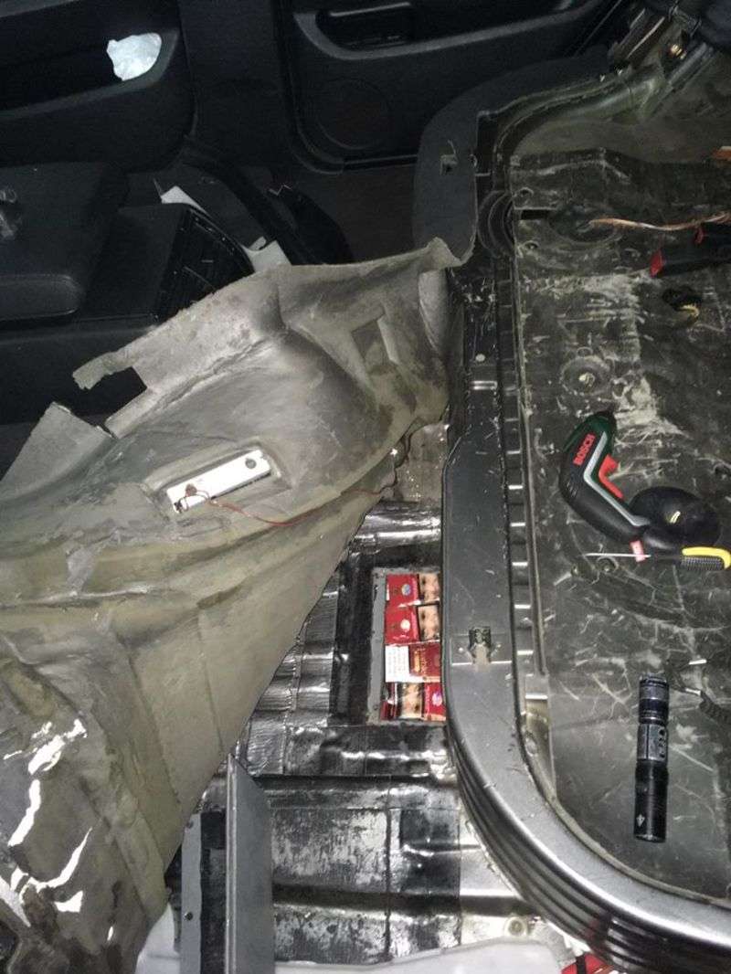 Враховуючи результати аналітично-пошукових заходів, співробітники митниці прийняли рішення про переведення транспортного засобу на смугу руху “червоний коридор”. Під час поглибленого огляду виявилось, що спеціально виготовлені шляхом кустарного збільшення днища тайники автівки вщент наповнені тютюновими виробами.