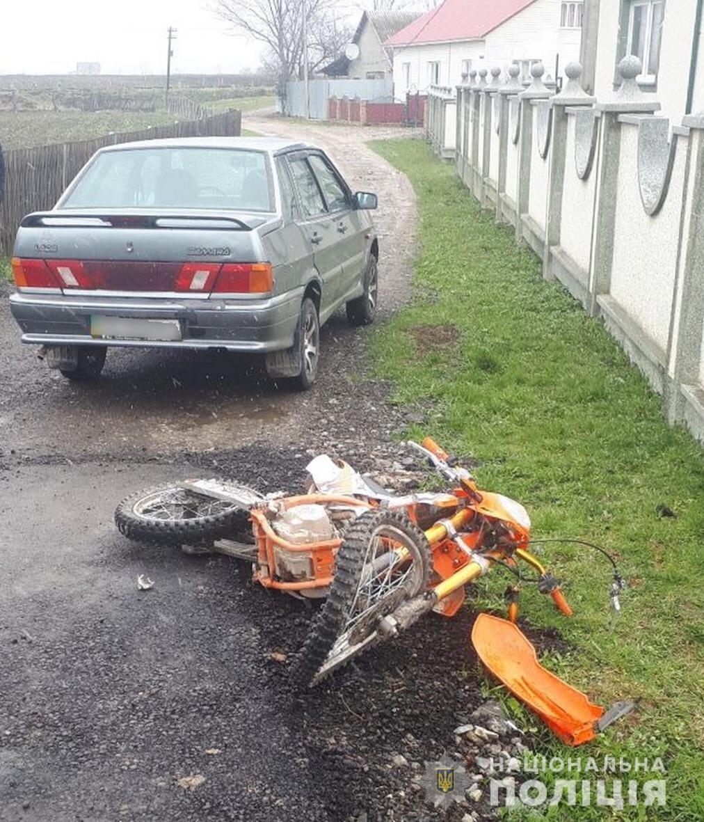 Прибувши на місце події, правоохоронці попередньо встановили, що мотоцикл без номерних знаків їхав позаду автомобіля «ВАЗ-2115». Коли 20-річний водій мотоцикла намагався обігнати легковика, той повернув ліворуч. Внаслідок зіткнення мотоцикліст отримав перелом ноги.