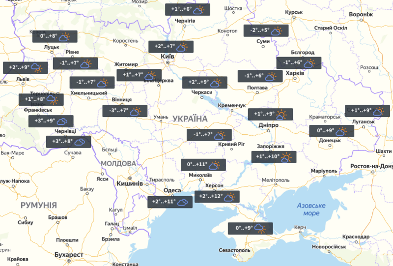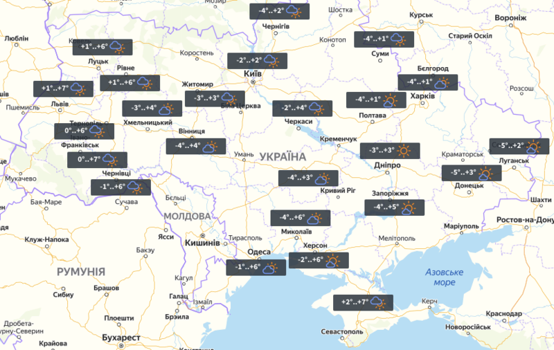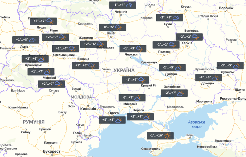 У суботу до Івано-Франківської та Чернівецької областей прийдуть дощі. На решті території збережеться похмура погода з проясненнями. Найхолодніше буде в Сумах, Полтаві та Харкові – вдень повітря прогріється до +2°.