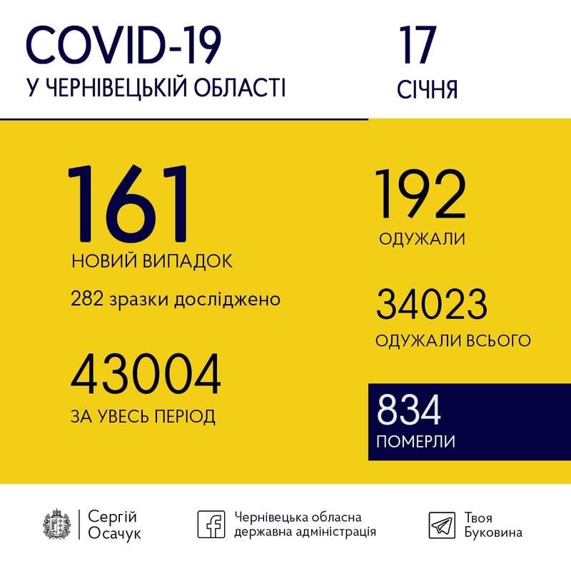 17 січня на Буковині виявили 161 новий випадок коронавірусу.