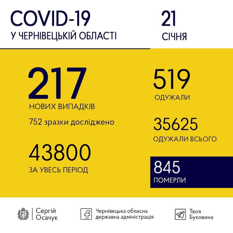 21 січня на Буковині виявили 217 нових випадків коронавірусу.