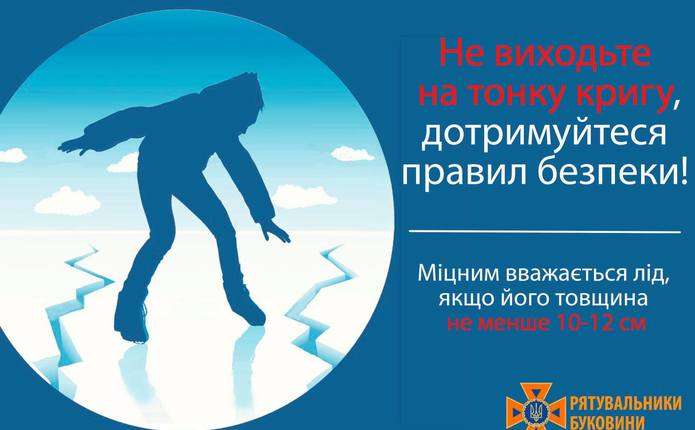 За інформацією працівників Чернівецької міської рятувальної станції на воді парку відпочинку «Жовтневий», сьогодні, 25 січня 2021 року, товщина криги на озері, що на вул. Комарова, складає 3-4 сантиметри, повідомляє пресслужба ДСНС України у Чернівецькій області.