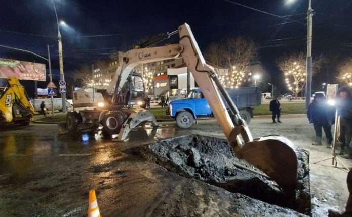 Бригада дільниці водопровідних мереж підприємства, залучивши до виконання ремонтних робіт спецтехніку підприємства, виконала розкопку в місці аварійного витоку з частковим обмеженням руху транспорту. Після чого, в 01:00 год. бригадою аварійно-диспетчерської служби відбулась зупинка водогону та скид води. Далі було проведено підготовчі роботи для зварювання ділянки трубопроводу.