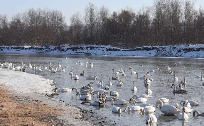 Більше 200 лебедів-шипунів зимують на території Мамаївської територіальної громади. Птахи оселилися на річці Прут поблизу людських осель, хоч зазвичай обирають порослі очеретом водойми подалі від сторонніх очей.