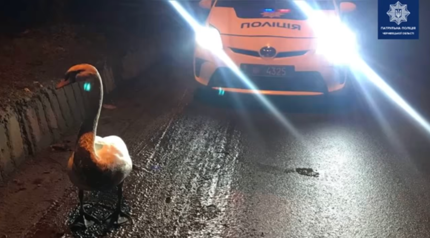 «Ми повідомляли чергового та командира, вирішували, що з ним робити, бо не щодня ловимо лебедя. Надалі помістили його до нашого «Пріусу». Він не чинив опір. Поводив себе приблизно так, як поводить себе загнаний собака. Опустив голову під сидіння, склав крила і так їхав із нами до самого управління патрульної поліції», — пригадує поліціянтка.
