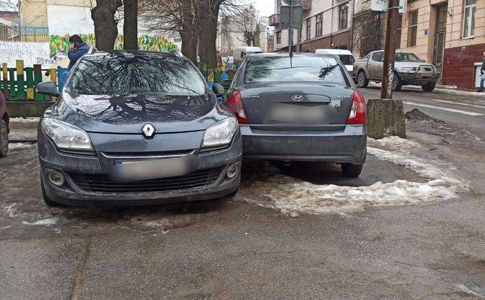 У Чернівцях трапилася дорожньо-транспортна пригода без водія. Зокрема, припаркована на вулиці А. Міцкевича автівка сама рушила з місця і зіткнулася з припаркованими машинами.