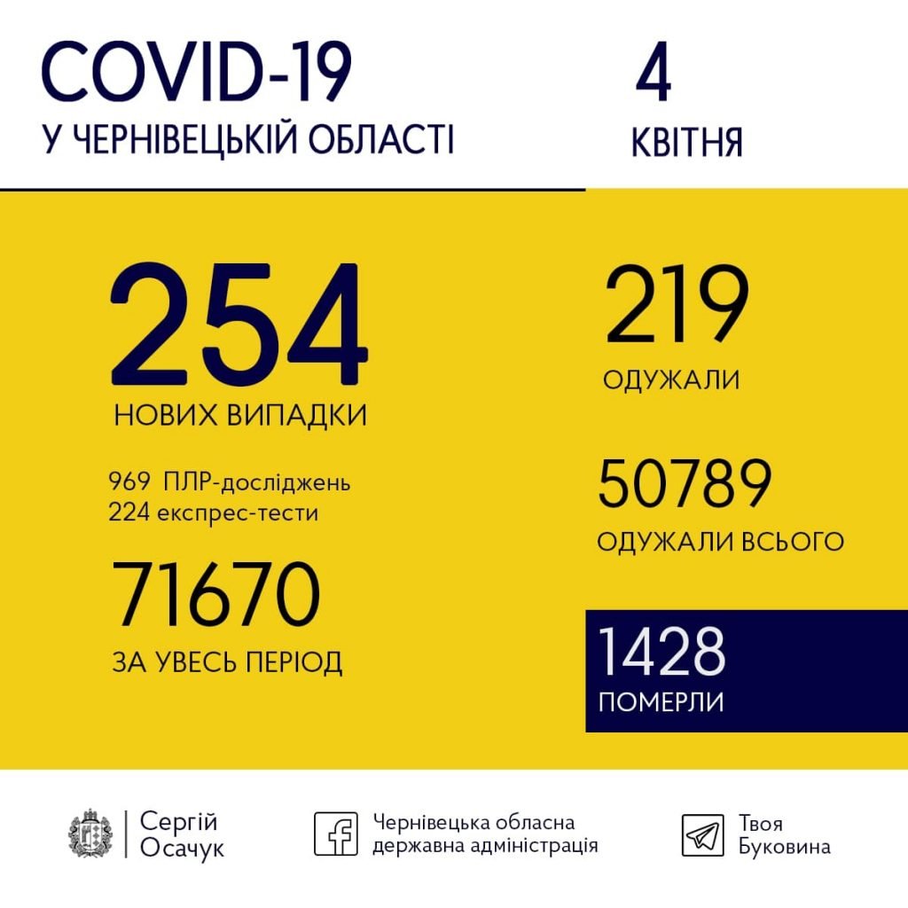 За останню добу, 4 квітня, на Буковині коронавірус підтвердили у 254 осіб.