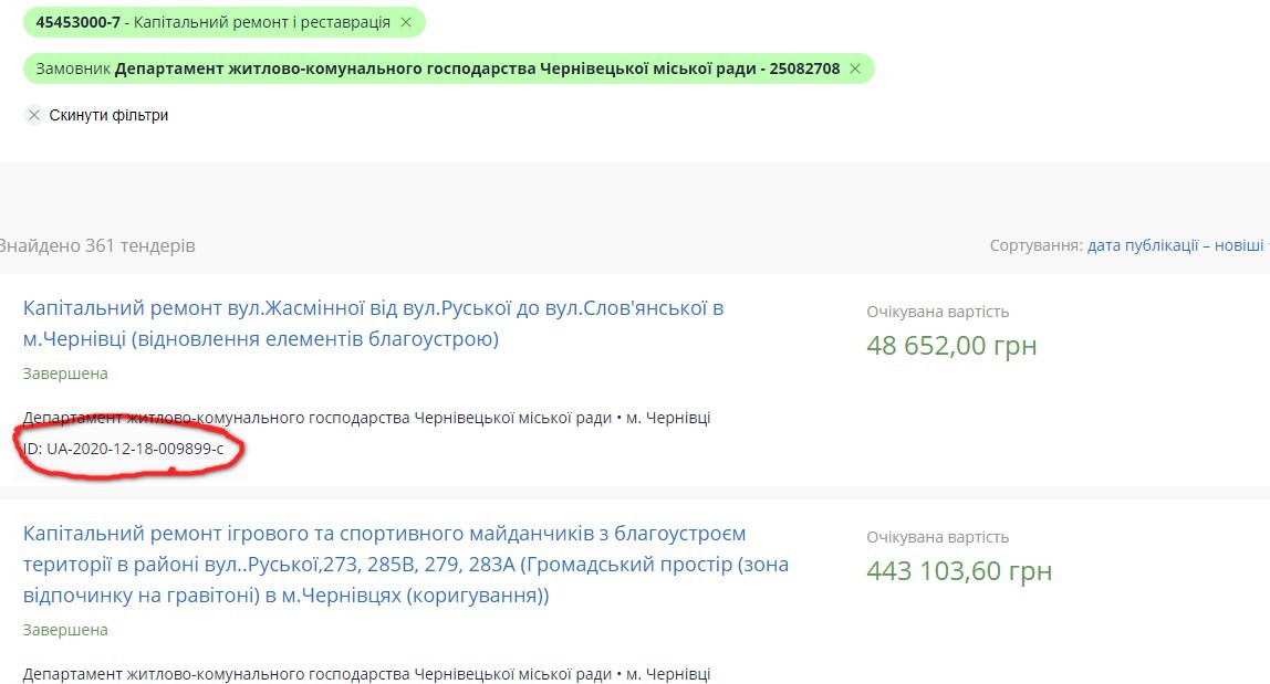 Для прикладу в 2019 році, у цей же час, було оголошено тендерів на ремонт доріг у Чернівцях на 36,3 млн грн, в 2020 році на 50 млн грн.