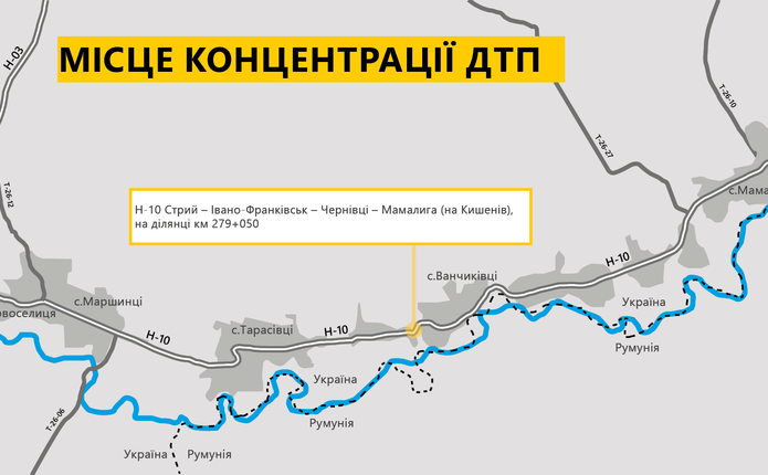 Служба автомобільних доріг у Чернівецькій області повідомляє про наявність однієї ділянки концентрації ДТП на дорогах загального користування державного значення. Йдеться про дорогу Н-10 Стрий – Івано-Франківськ – Чернівці – Мамалига (на Кишинів), на ділянці км 279+050. Межі села Ванчиківці колишнього Новоселицького району.