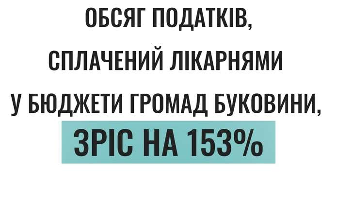 Обсяг податків, сплачений лікарнями у бюджети громад Буковини, за минулий рік зріс на 153%.