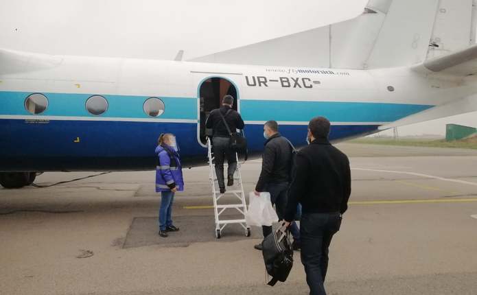 Рейс виконується літаком АН-24РВ авіакомпанії "Мотор Січ"