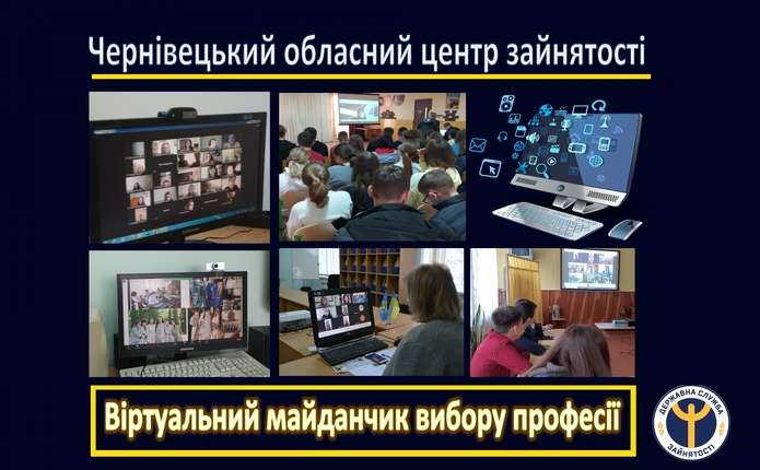 Впродовж квітня – травня 2021 року в Чернівецькій обласній службі зайнятості працював «Віртуальний майданчик вибору професії», на якому учні 9-11 класів буковинських гімназій, ліцеїв та шкіл мали можливість спілкуватися з представниками вищих та професійно-технічних навчальних закладів області.