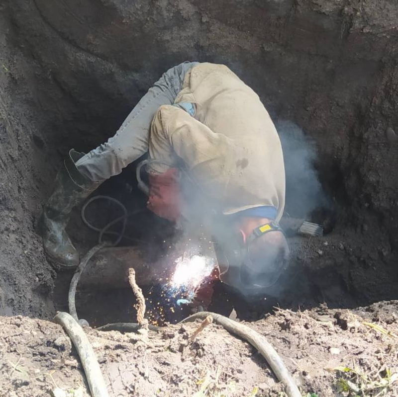 Після проведення необхідних розрахунків, якими вирахували необхідний для нової труби діаметр (щоб і тиск не знизився, і води на усіх підключених споживачів вистачило), було зроблено дві розкопки, встановлено два фланцевих адаптера, після чого протягнули новий водопровід.