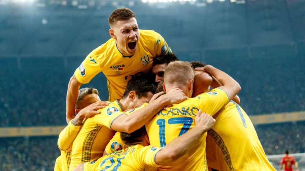 Автор блогу на The Guardian Джонатан Вілсон відзначає, що блакитний та жовтий кольори на формі гравців збірної України відображають український прапор, який бере початок із кольорів Галицько-Волинського князівства XII сторіччя та символізує синє небо над полем пшениці. За словами автора, це здається абсолютно невинним, але саме через ці родючі землі Україна була і залишається привабливою для загарбників і її так важко захищати.
