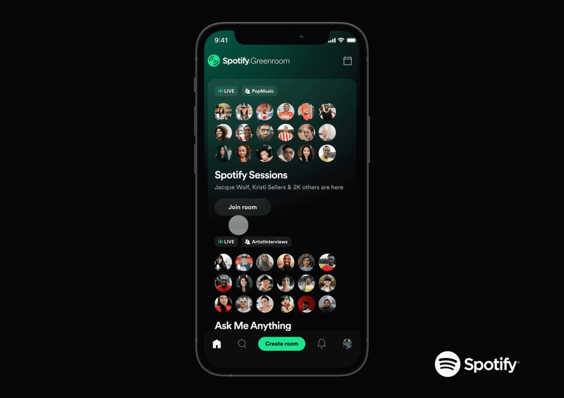 Greenroom працює за таким принципом, що й інші аудіоплатформи: у ньому є голосові чати, які може створити будь-який користувач. Потім слухачі приєднуються до етеру, а модератор дає їм можливість висловитися. Такі кімнати вміщають до 1000 осіб.