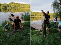 Буковинець Василь Антонюк в озері у парку “Жовтневий” у Чернівцях зловив величезного сома.