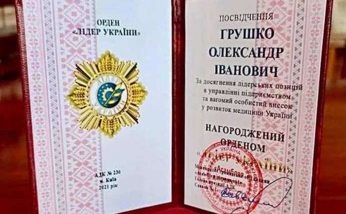 Генерального директора обласного комунального некомерційного підприємства «Чернівецька лікарня швидкої медичної допомоги» Олександра Грушка напередодні дня Конституції України нагороджено Орденом «Лідер України».
