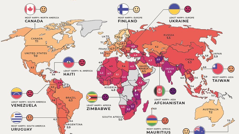 Світовий звіт про щастя-2021 (Global Happiness Levels 2021) назвав Україну найнещасливішою країною в Європі. Коефіцієнт щастя у нашій країні дослідники оцінили у 4,9, тоді як середній у Європі – 6,4.