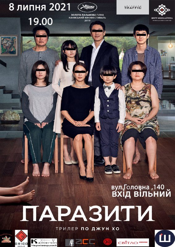 8 липня о 19:00 у Кіномистецькому центрі імені Івана Миколайчука у Чернівцях демонструватимуть фільм «Паразити». Показ відбудеться з нагоди святкування Дня родини у Центрі (вул. Головна, 140).