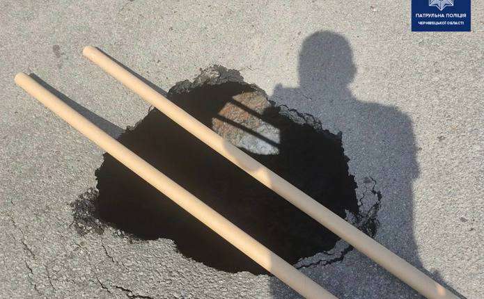 За даними патрульних, глибина ями – приблизно 3 метри. Ширина – сантиметрів 70, але від руху автомобілів діаметр збільшується.