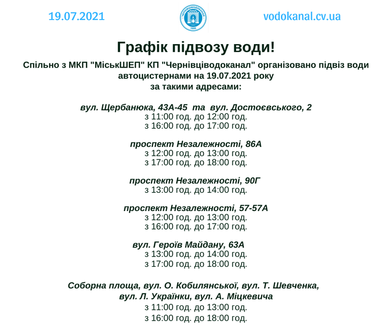 Спільно з МКП “МіськШЕП” КП “Чернівціводоканал” організовано підвіз води автоцистернами.