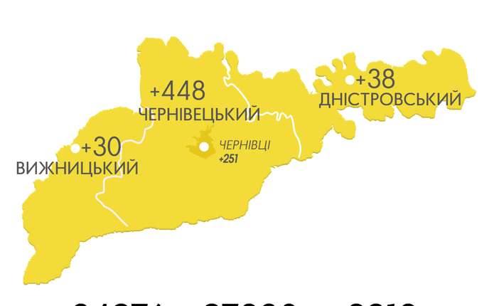 - Чернівецький район +448, із них 251 випадок – у Чернівцях