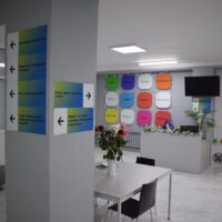 Приміщення обладнане навігаційними вказівниками, тактильними та візуальними елементами доступності. Для відвідувачів з дітьми створено ігровий простір, облаштовано комфортні умови і в залі для очікування та відпочинку.