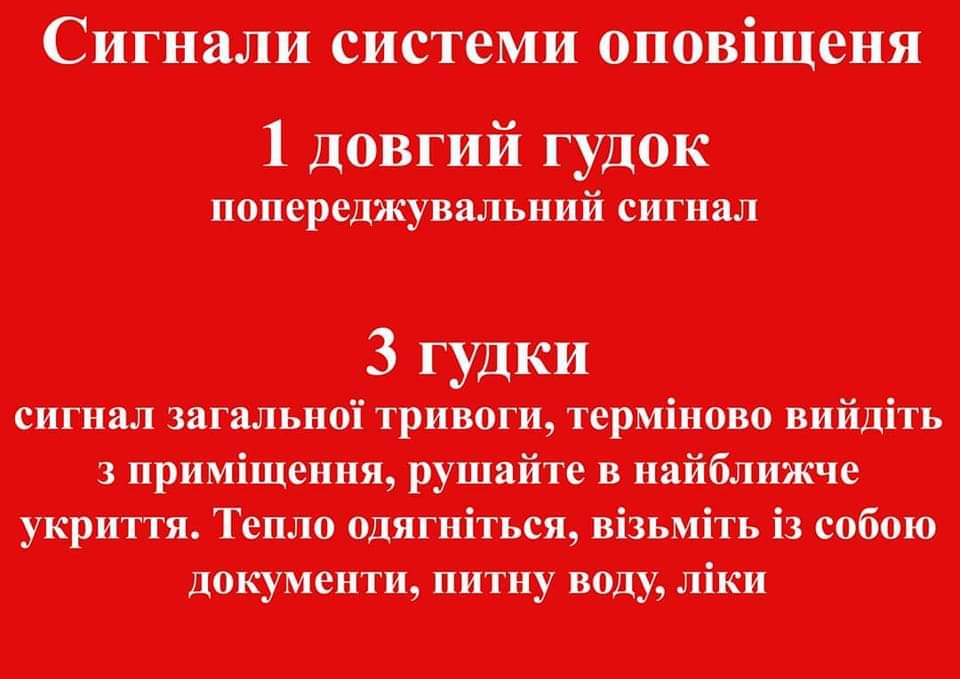 З метою привернення уваги населення до сигналів оповіщення цивільного захисту вмикаються електричні сирени. Які дублюються протяжними гудками інших звукових пристроїв суб’єктів господарювання та транспортних засобів.