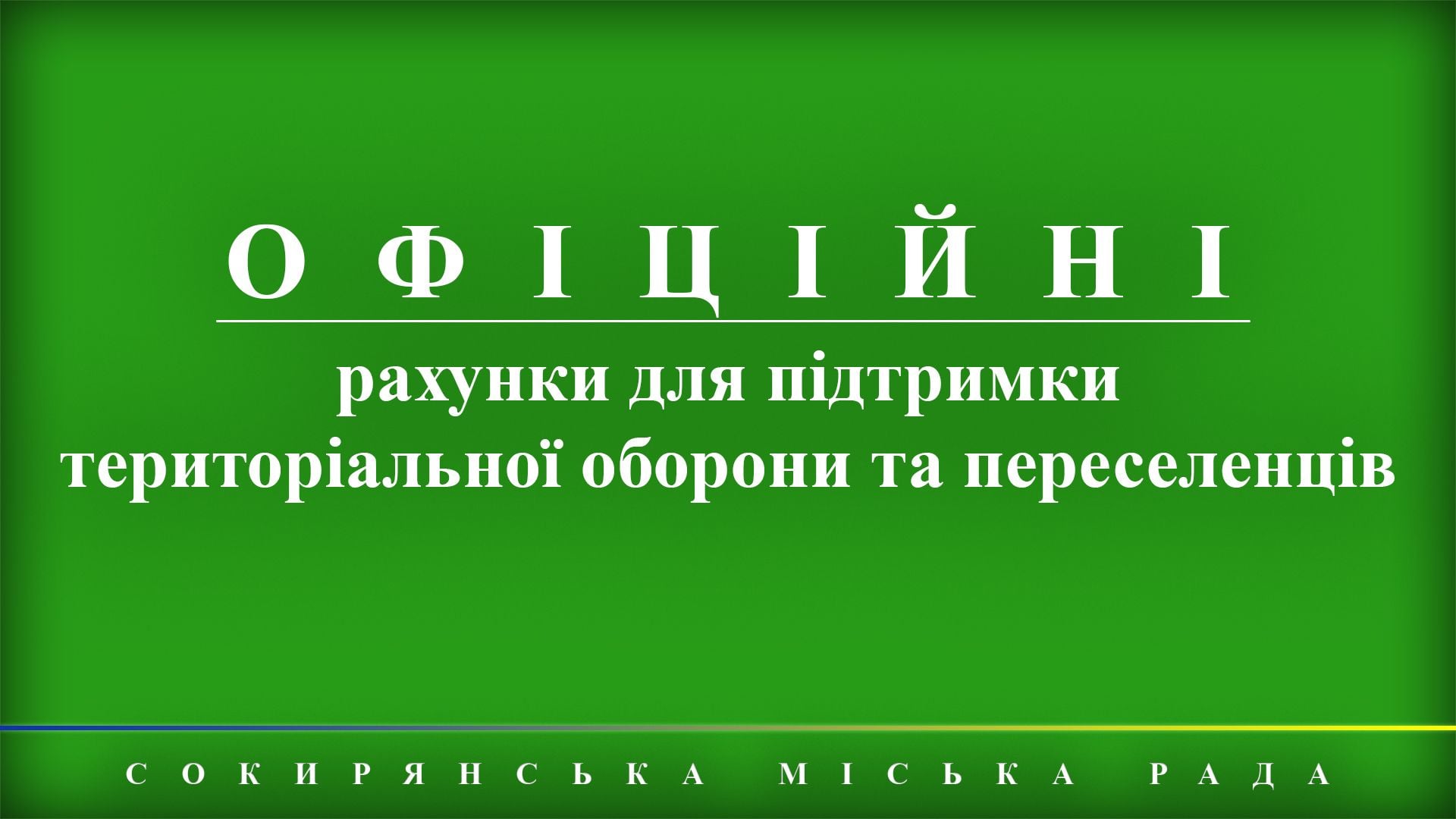 За дорученням міського голови Василя Козака в Сокирянській міській раді відкрито спецрахунки, на які громадяни можуть перерахувати кошти на підтримку територіальної оборони громади та на підтримку громадян, які прибувають з території активних бойових дій.