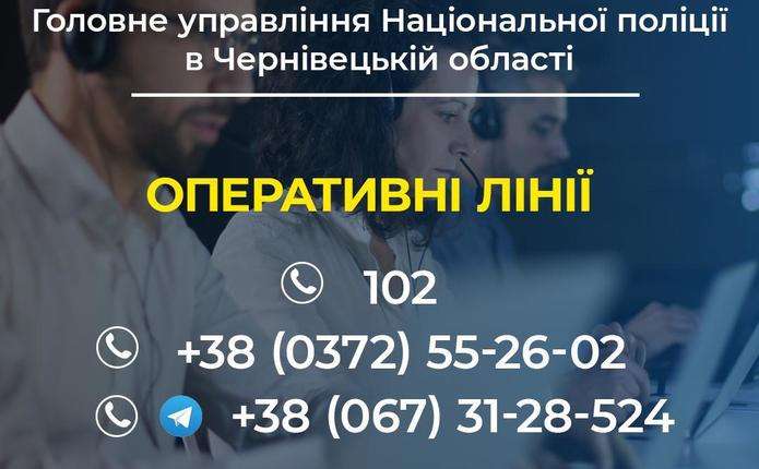 Окрім цього, в ГУНП в Чернівецькій області продовжує працювати цілодобово телефон чергової частини – (0372) 55-26-02.