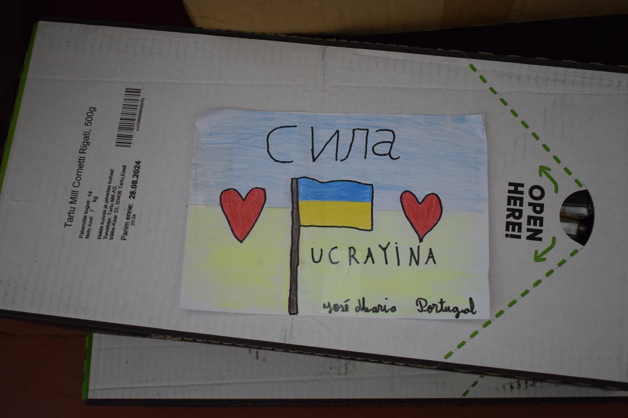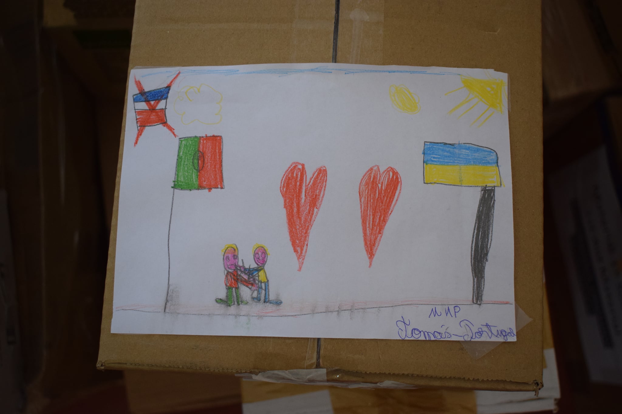 Частинка української душі та сили вкладена у малюнки, які намалювали та прикріпили на кожен пакунок маленькі українці в Португалії. В них сила, і воля, і незламний український дух.
