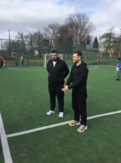 Знаменитість провів заняття з дітьми разом із переможцем міського та обласного етапу Всеукраїнського конкурсу “Вчитель року- 2017”, майстром спорту з рукопашного бою, вчителем фізкультури Миколою Нігою.