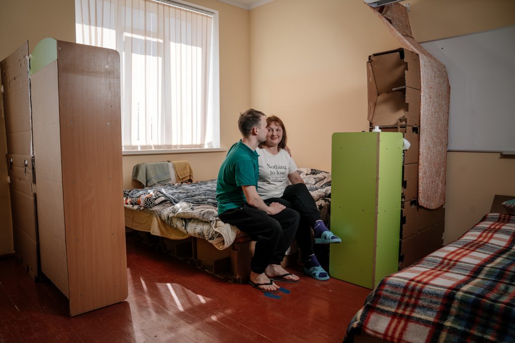 Переселенці часом також долучаються до волонтерства, та більше відпочивають. У колишніх дитячих кімнатах живуть і жінки, і чоловіки, бо можливости розділяти приміщення немає.