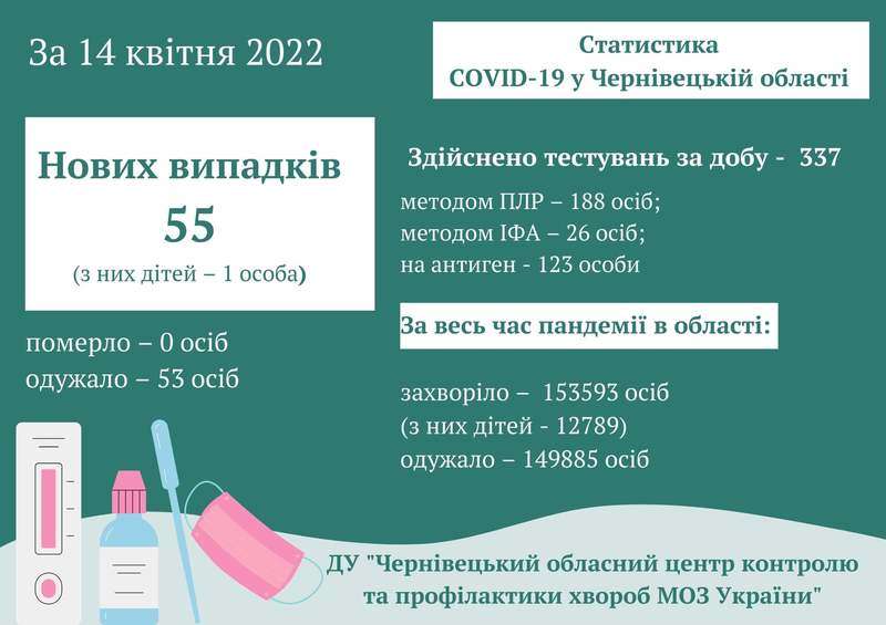 За добу 17 квітня 2022 року в Чернівецькій області зафіксовано 25 нових випадків коронавірусної хвороби