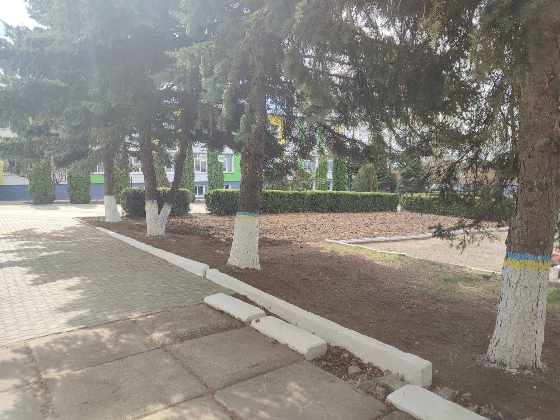Так, днями, колективом Гвіздівецького ліцею впорядковано шкільне подвір’я. Аби надати території ще більш естетичного вигляду, працівниками ліцею висаджено кущі самшиту, а стовбури струнких ялинок, які розташовані тут, замайоріли патріотичними синьо-жовтими кольорами.