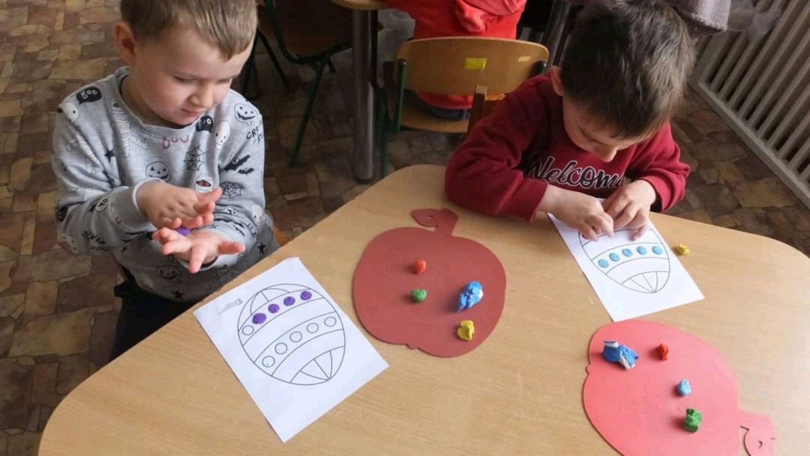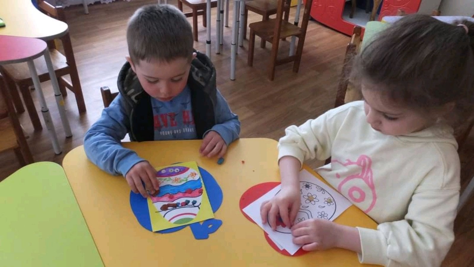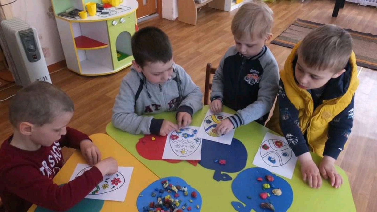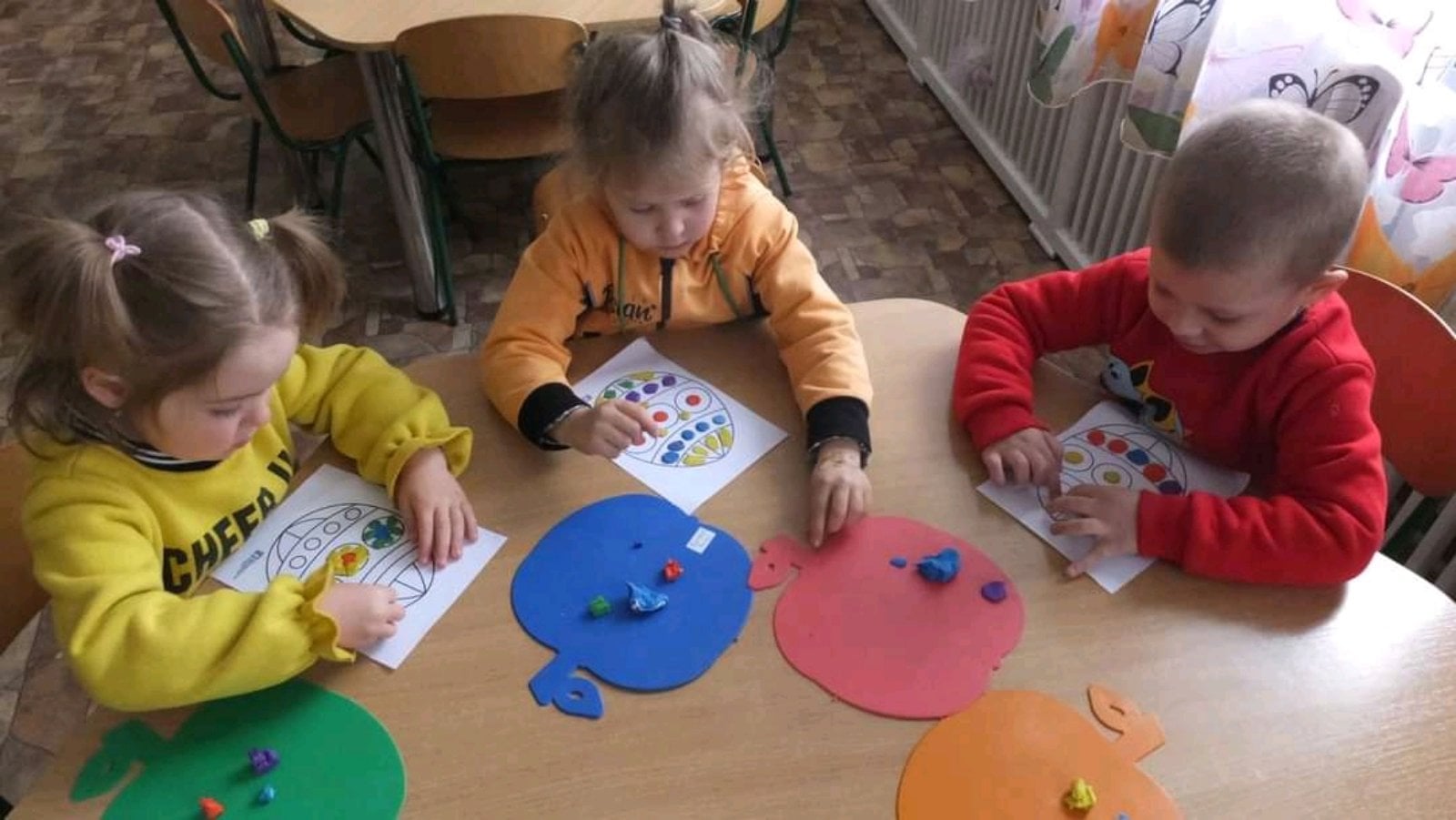 19 діток із числа внутрішньо переміщених осіб знайшли тепло, підтримку та нових друзів у закладі дошкільної освіти №1 «Веселка» міста Сокиряни. Днями разом зі своїми однолітками та вихователями вони активно готувалися до пасхальних днів. Створювали цікаві тематичні композиції, ліпили, малювали патріотичні великодні малюнки, які прикрасили інтер’єри груп, та отримали позитивні емоції в очікуванні свята.