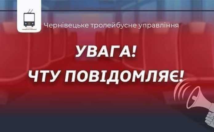 Як повідомляють на фейсбук-сторінці КП “Чернівецьке тролейбусне управління”, орієнтовний час ремонтних робіт – година.