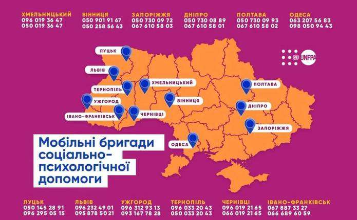 Мобільні бригади Чернівців, Запоріжжя, Дніпра, Полтави, Одеси, Вінниці, Ужгорода, Тернопіля, Хмельницька, Львова, Луцька та Івано-Франківська надають допомогу постраждалим від насильства, зокрема внутрішньо переміщеним особам, які вимушено залишили зони бойових дій. Про це повідомляє Чернівецька обласна рада на сторінці у фейсбук.