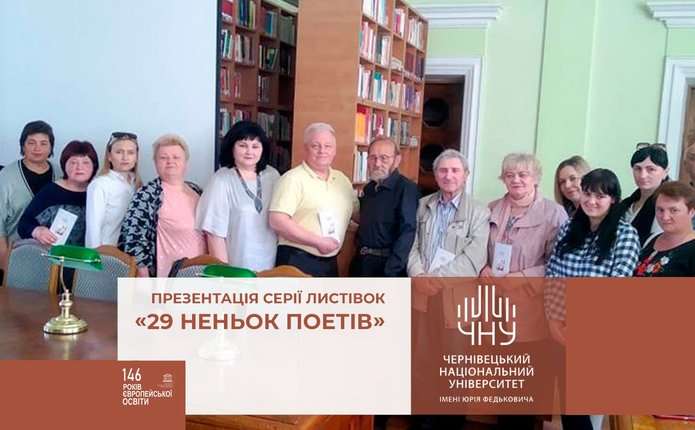 У Науковій бібліотеці Чернівецького національного університету імені Юрія Федьковича відбулася 21-ша презентація поетичних листівок-присвят спеціального проєкту Чернівецької обласної організації Національної спілки письменників за підтримки авторів.
