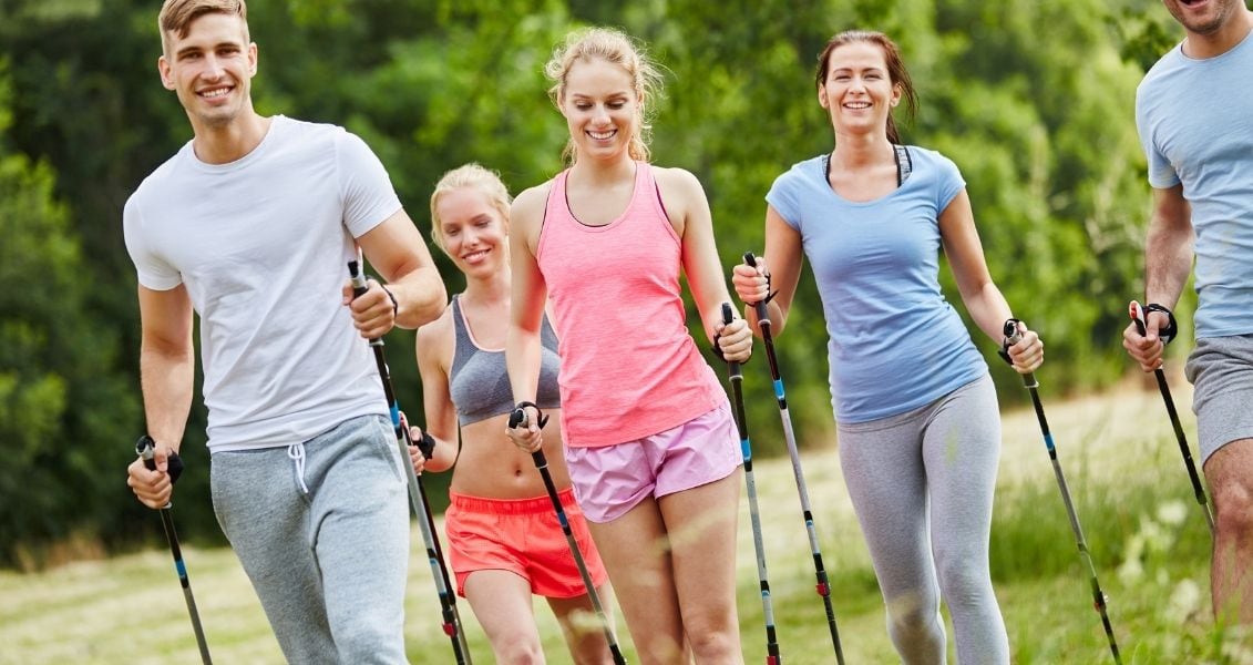 Це різновид фізичної активності, що полягає у ходьбі зі спеціальними палицями, котрі нагадують лижні. Ходьба з палицями сприяє активному спалюванню калорій, підвищенню витривалості, подоланню більшої відстані, ніж без них. Скандинавська ходьба залучає майже увесь верхній корпус, допомагає покращити роботу рухового апарату, корисна для тих, хто страждає на артрити й артрози, захищає від серцево-судинних захворювань та діабету. Чудово підходить для людей пенсійного віку, адже коліна й хребет практично не навантажуються.