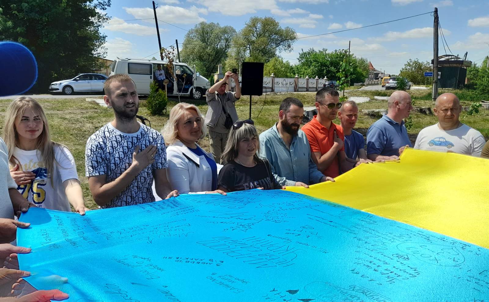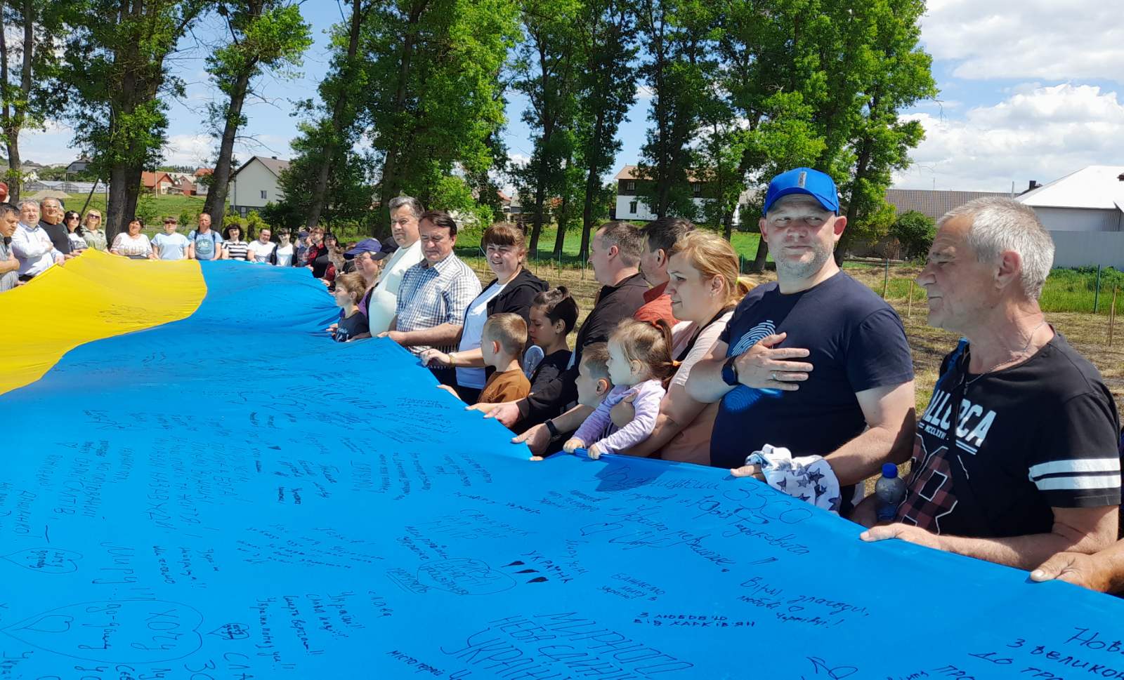 Учасників заходу надихає українськими шлягерами Народний артист України ІВАН ДЕРДА. Пісні “Ясени”, “Марічка” у його виконанні знаходять відгук серед присутніх, люди співають разом. Після закладин саду всіх пригощають смаколиками та фірмовим тортом у патріотичних кольорах від Пекарні-кондитерської “NikoNova” ГАЛИНИ НІКОНОВОЇ. Люди з різних міст охоче пишуть свої побажання Україні та Буковині на ще одному оберезі – 10-метровому Прапорі від голови Клубу Успішних Жінок Буковини ІЛОНИ БОРДЯН. Захід завершується спільним виконанням Гімну.